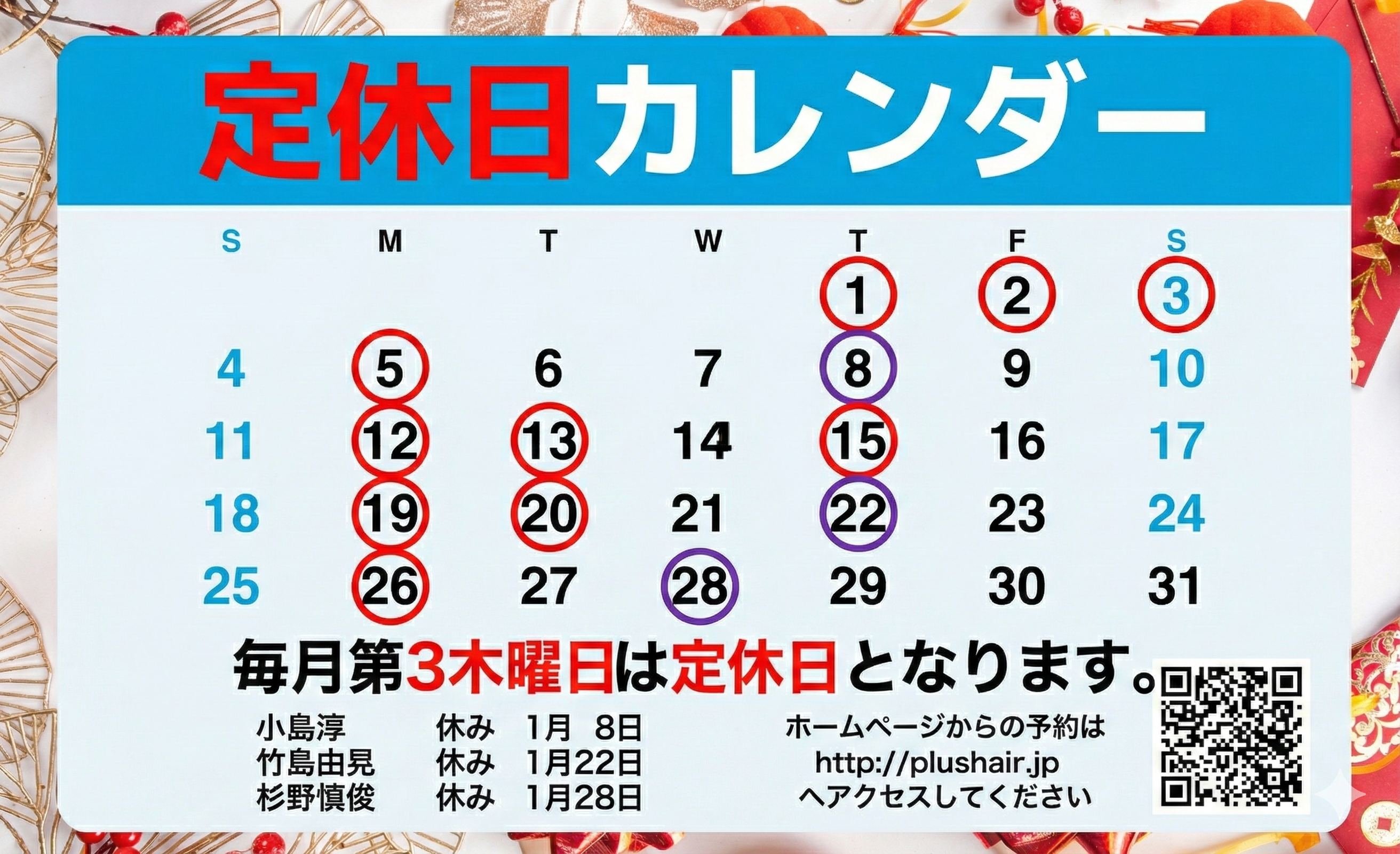 2026年1月の営業日とスタッフ休みのお知らせ|今年も一年ありがとうございました