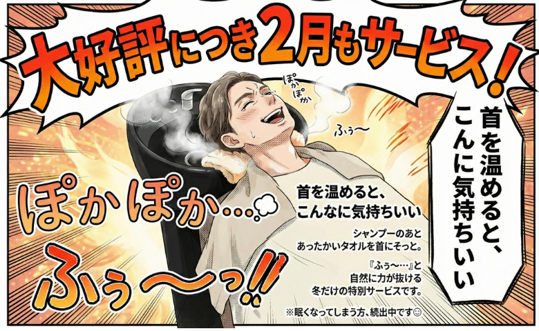 こんにちは。2月に入り、寒さもいよいよ本番ですね。朝、布団から出るのがつらかったり、首元をすくめながら外に出たり…「早く春来ないかなぁ」なんて思う日も多いのではないでしょうか。この時期は、知らないうちに身体に力が入りがち。特に首や肩まわりは、冷えやすく疲れがたまりやすい場所ですよね。そんな冬の時期にぴったりのケアとして、1月に実施したPlushairの…