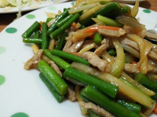 続々と運ばれてきます!!唐揚げに、豚肉とニンニクの芽の炒め!!
