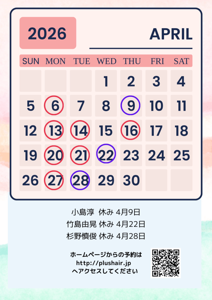 こちらの日程をご確認の上ご予約をお願いいたします✂️